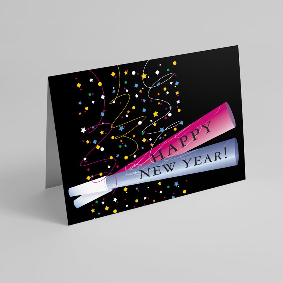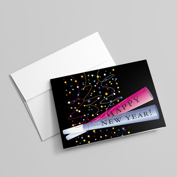 Bring in the New Year with lots of noise and confetti! This new years card shows how much you enjoy to spread the joy of the holiday season.
