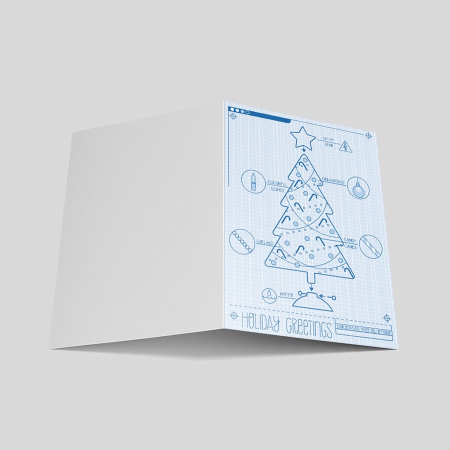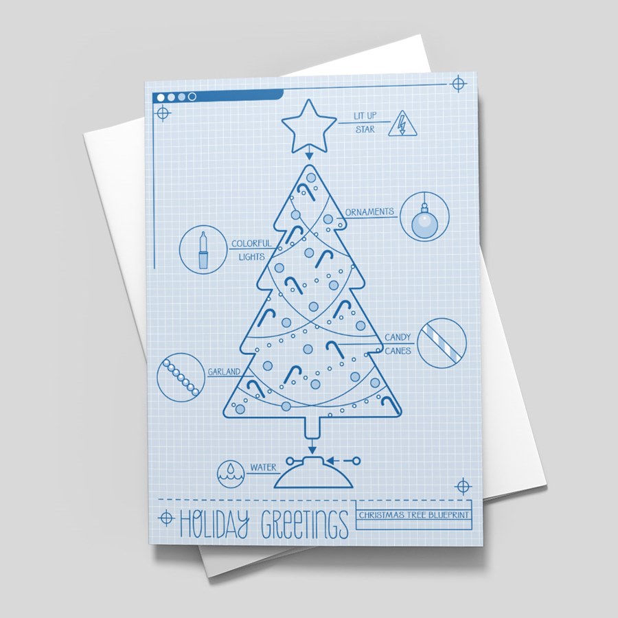 Building the perfect business relationship with your customers and associates all starts with well-drafted plans. Sending this clever holiday greeting depicting the blueprints for a Christmas tree is the perfect way to convey your holiday wishes and promote your business.