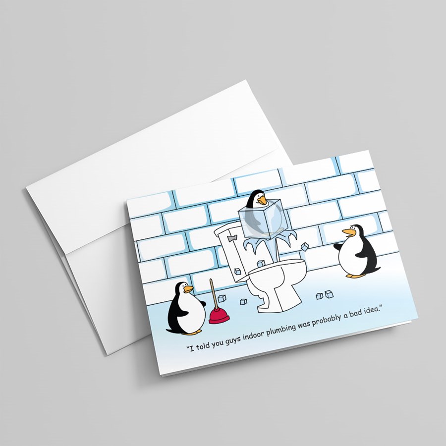 This humorous plumbing holiday card is a clever reminder that plumbing installations are best left to professionals!